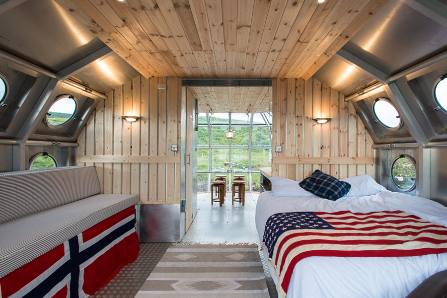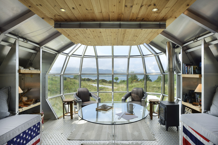 Les architectes de la firme Roderick James Architects sont les concepteurs de plus de 1000 maisons, cabanes et péniches depuis trente ans, faisant d’eux des spécialistes des petits espaces. Ils ont récemment créé l’Airship, une tiny house réalisée à partir d’aluminium et de bois, conçue pour résister au montage et au démontage, disponible à la location sur Airbnb. Modulable, une seconde chambre peut y être installée. Des panneaux photovoltaïques ont été installés afin d’obtenir de l’électricité, et le toit a été conçu afin de récupérer l’eau de pluie, transférée dans des conteneurs situés sous le plancher. Enfin, les larges fenêtres de la tiny house permettent d’offrir une vue incomparable à ses utilisateurs, qui pourront admirer les étoiles tout en restant au chaud.